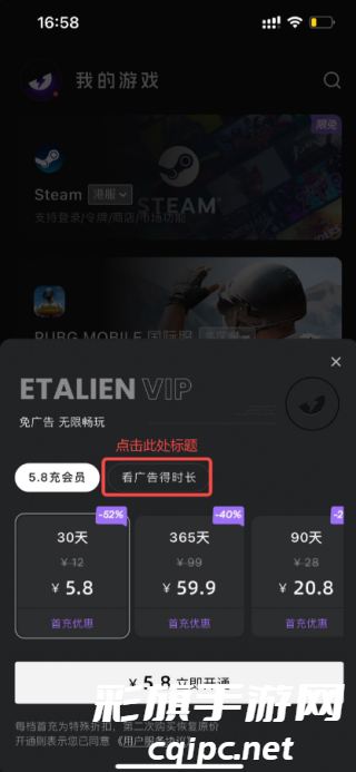 2、点击看广告得时长的标题
