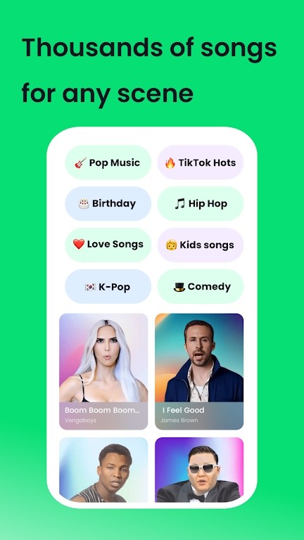 1. 上传一张照片,选择你最喜欢的歌曲,让你的照片唱歌!