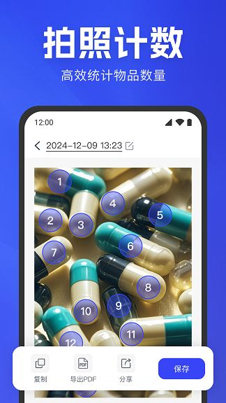 2、文档拍摄:各类文档、名片、银行卡等快速生成高清1:1打印扫描件