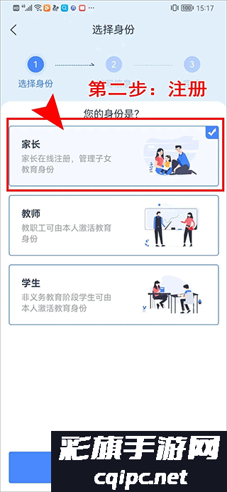 2、然后进入注册页面,选择你的身份