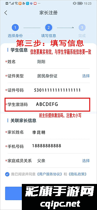 3、进入后填入相关信息,注意激活码是学校老师提供的