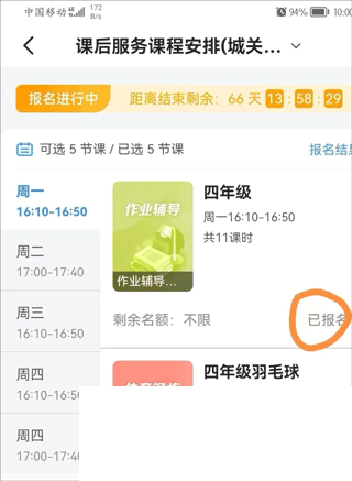 4、最后页面中显示已报名则为选课成功