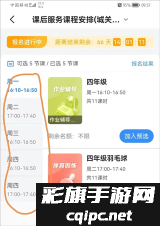 1、注册登录后,在首页中点击课后服务进入选课环节