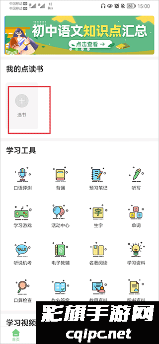 1、打开爱点读app,在首页中点击选书