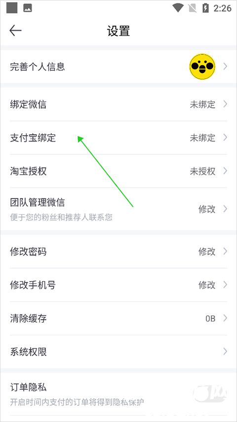 在打开的新页面中点击【支付宝绑定】