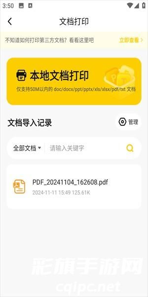 2、在主页点击文档打印模式,这里选择需要打印的文档内容,可以搜索关键词查找。