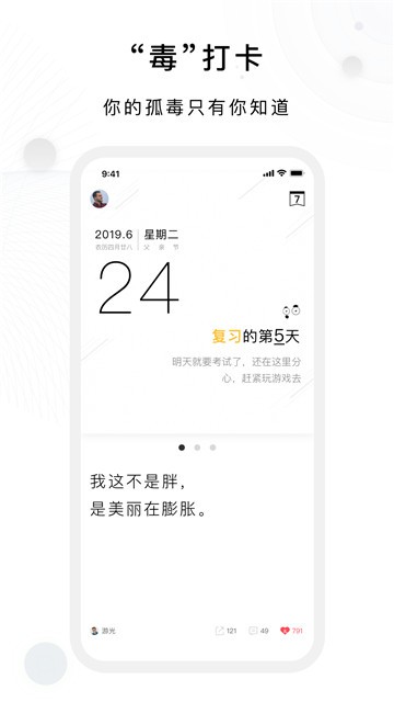 1、毒汤日历很有趣。它提供了很多毒鸡汤。虽然鸡汤是有效的,但毒鸡汤也可以以毒攻毒。还有一个功能可以让用户提交有毒的鸡汤。