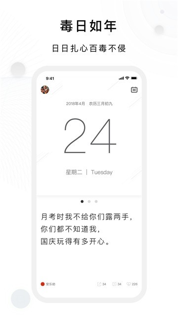 毒汤日历是一款日历软件,软件中用户可以快速查看日历,软件的功能很多,软件中的日历会有很多毒鸡汤,并且每天的毒鸡汤都不一样,软件中用户也可以发表自己的毒鸡汤,用户还可以与其他用户进行互动,并且用户还可以查看其他人发表的言论,用户还可以进行点赞评论等,软件中用户可以设置备忘录在软件中,提醒自己别忘记重要事情,软件中的日历信息非常准确并且也非常详细。