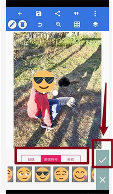 4、点击“帖纸”,选择您想要加入的图,显得更有趣