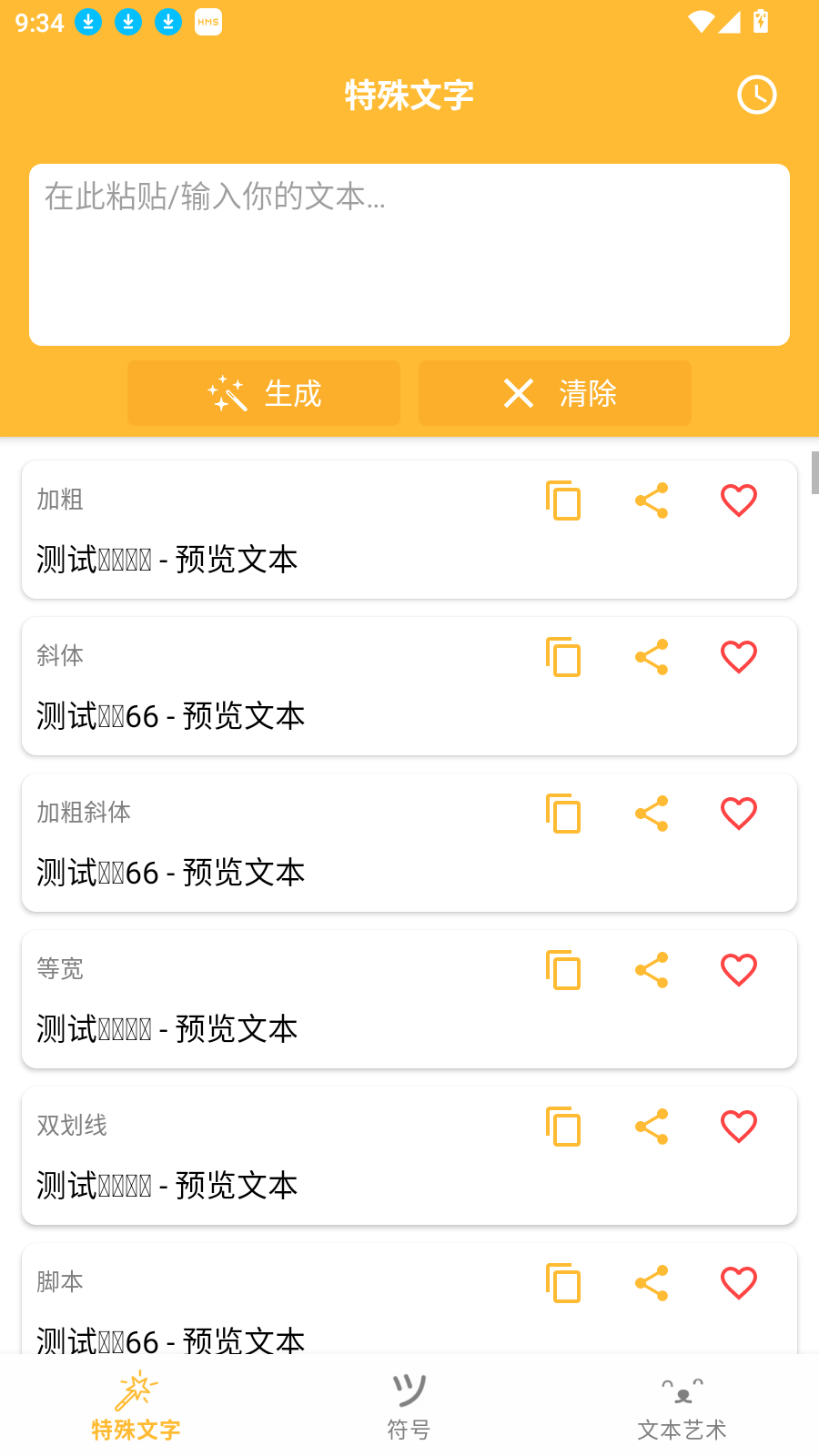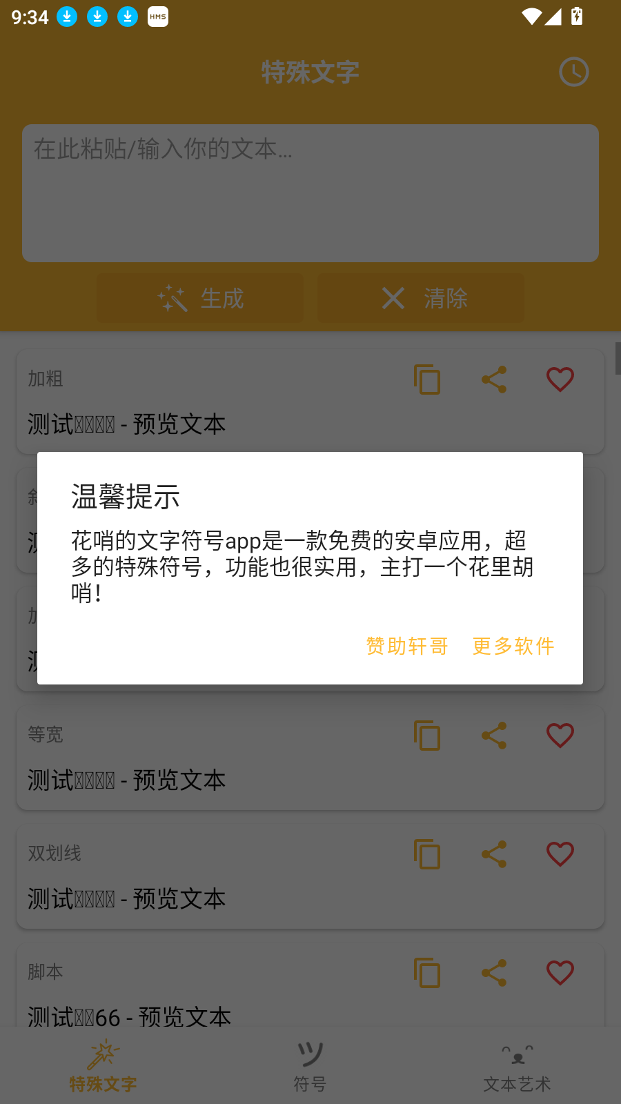软件中所有的功能都是免费的,用户可以放心使用这款软件,软件中的功能用户也可以使用到,软件中用户可以一键生成自己粘贴的文本,软件中的符号多样,软件的操作简单,新手用户也可以快速使用。