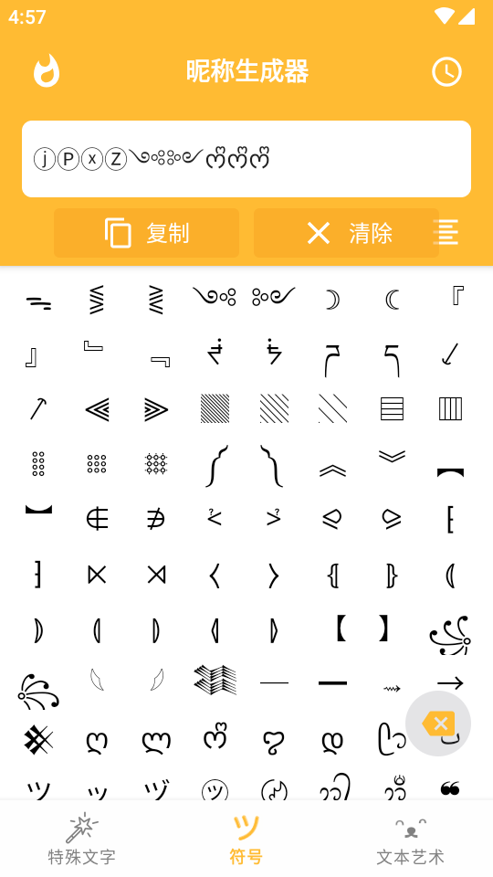 花哨的文字符号软件页面清新,软件的功能很多,并且非常齐全,软件中的文字符号各种各样,非常丰富,软件中的文本艺术种类很多,并且种类的划分很详细,用户可以快速找到自己想要的符号,软件中还有昵称生成器,只需要用户输入自己的昵称,就可以快速出现好看的符号,用户还可以粘贴文本,软件会快速出现适配的符号,并且美化文本,软件的功能非常实用。