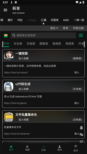 点击工具内容,提供图片转latex、文案撰稿、代码反混淆等实用工具