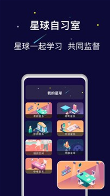 2、冥想星球可以像虚拟的自习室一样,找一群志同道合的小伙伴一起学习,互相监督,一起打卡,养成好习惯,逃离手机控制。