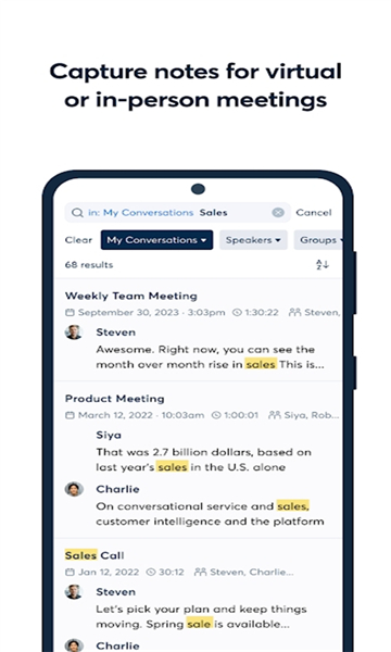 自动记录会议笔记并与队友共享,以保持每个人同步,记录和转录采访,讲座,播客,视频,网络研讨会,主题演讲