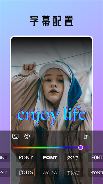 2、字幕效果:多种风格随意,添加字幕,添加文字到图片,丰富的字体和颜色的选择。