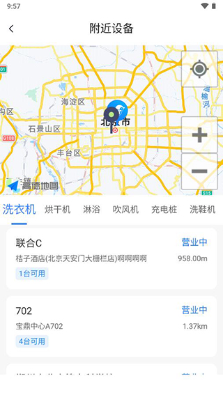 2.然后可以在这里查看洗衣机、烘干机、淋浴、吹风机所在的地理位置和设备数量。