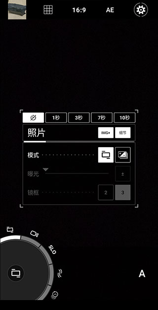 2、当进入软件之后竖屏模式点击相机左下角图标后,即可对相机进行各种设置,并且点击相应图标即可切换图片以及视频设置选项。