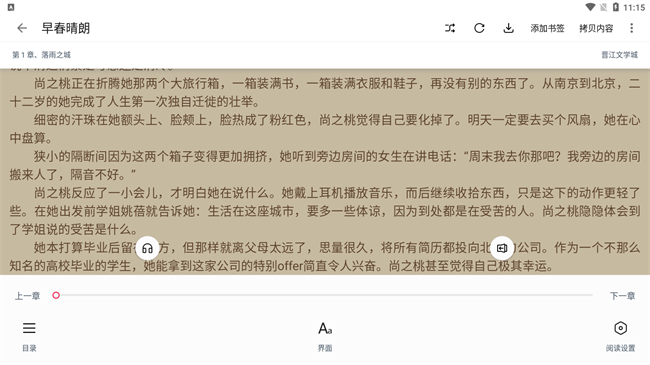 2. 你可以选择一个舒适的夜间阅读模式。晚上看小说时,可以切换到深黑色,可以减少眼睛疲劳,使夜间阅读更舒适;