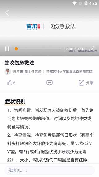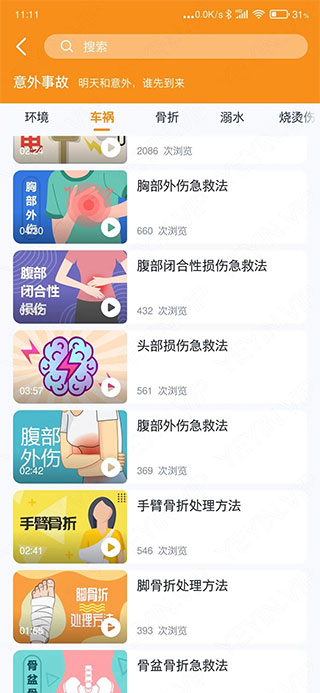 每一个急救都有详细的介绍和解决办法,采用视频和图文形式解答。