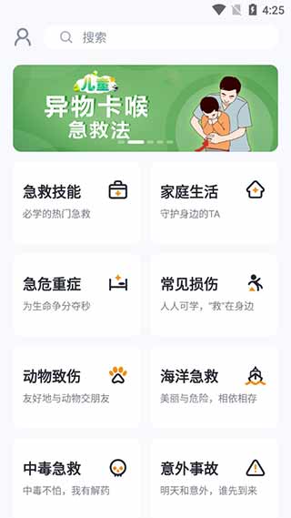 打开首界面,涵盖了各种急救知识,比如首页所示的【止血】,可以这玩意每个人的一生都会遇到;