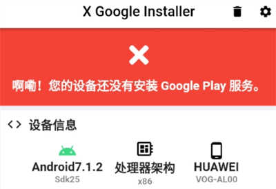 1.在本站下载XGI谷歌安装器并打开,提示没有安装谷歌服务。