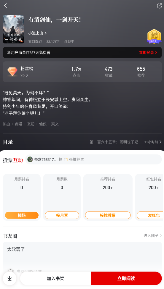 2、点击“立即阅读”即可进入阅读界面。