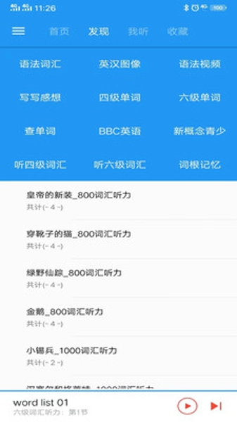 1、简洁实用,本软件内存占用小于20M,在这里可以查单词,可以听四六个词汇。