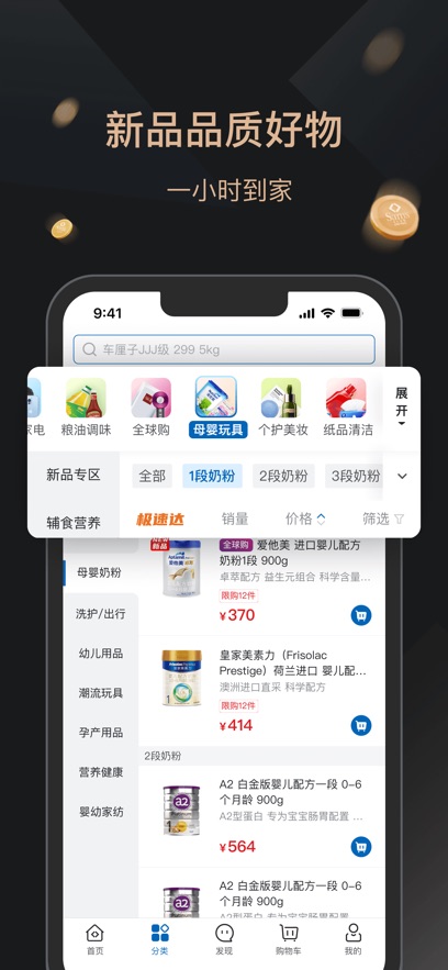 4、1小时极速达,分类极速达专区优化上线,享受极速好物