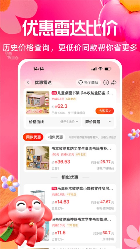 一淘是淘宝推出的一款比价省钱app,为产品提供全网比价服务,它可以全网显示不同商家同一产品的价格,帮助用户选择最有利的购买渠道,应用还支持购物折扣,用户在平台上购买商品后,收到后可以获得相应的返利,帮助用户省钱,它不仅省钱,而且还提供了好处,用户可以通过每天签到获得现金,通过完成任务积累能量,这些能量可以兑换大红包,直接从购买中扣除。