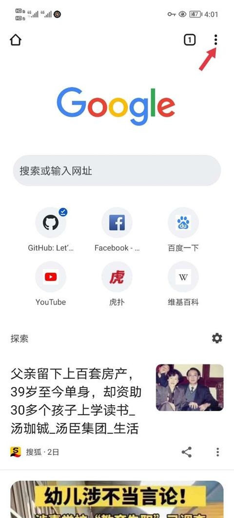 首先说说手机谷歌浏览器设置无痕浏览,在首页点击右上角,进入设置;