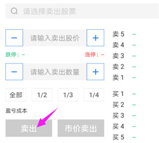 3、序需要卖出股票的话,点击卖出选项;输入需要卖出的股票代码,股价以及数量,并点击卖出即可;