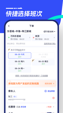 2. 安全合规:具有国家合规备案,是广东省合法经营的互联网道路客运网络平台,确保每一次出行的安全。