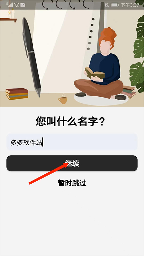 1、打开Motivation最新版应用,输入自己的昵称后选择【继续】选项,也可以选择暂时跳过,