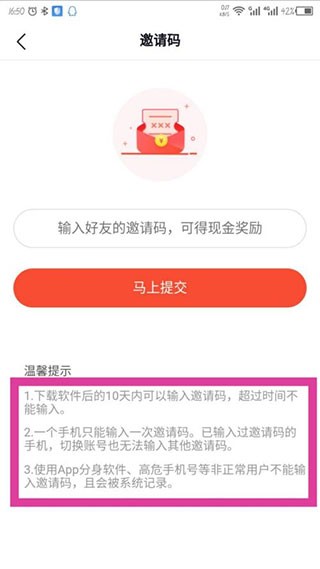 4.可以根据温馨提示,需要符合要求,才可以输入邀请码获得奖励;