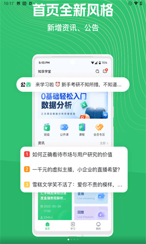 知享学堂是一款非常好用的手机学习软件,提供了非常丰富的资源和课程内容,有非常专业的教师团队,用户可以自由的学习和刷题,还有很多直播课程让你享受更加优质的课程内容,是一款非常好用的学习软件!