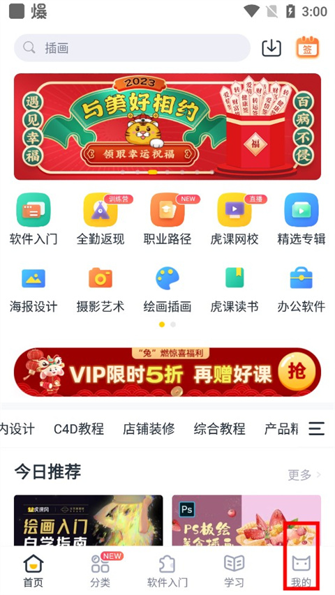 1、 首先我们进入虎课网app当中,进入“我的”板块;