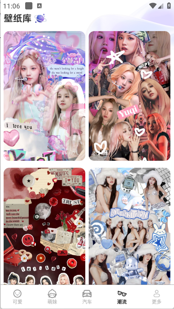 3. 类别及内容:情感语录、励志语录、美丽名人、可爱宠物、文字故事、自然景观、节气节日、情侣壁纸、化身表情、绿色创意荧光特效、夜光壁纸。