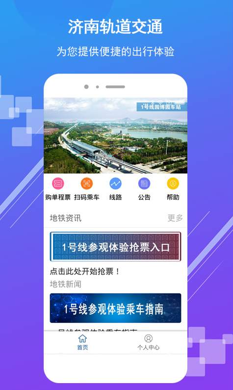 1、在本站下载安装济南地铁app,注册并登陆,可以看到有首页和个人中心两个板块;在首页,可以看到很多的地铁资讯跟新闻内容;