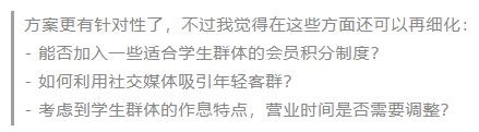 以上面咖啡店开业方案为例,DeepSeek 写的第一版方案没有很好地突出“大学生”这个目标客群。这时候,别急着否定,而是可以这样继续对话: