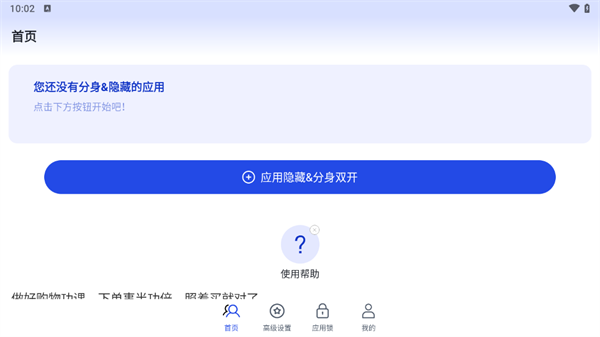 1、首先打开多开分身管理大师,进入首页后点击【应用隐藏&分身双开】。