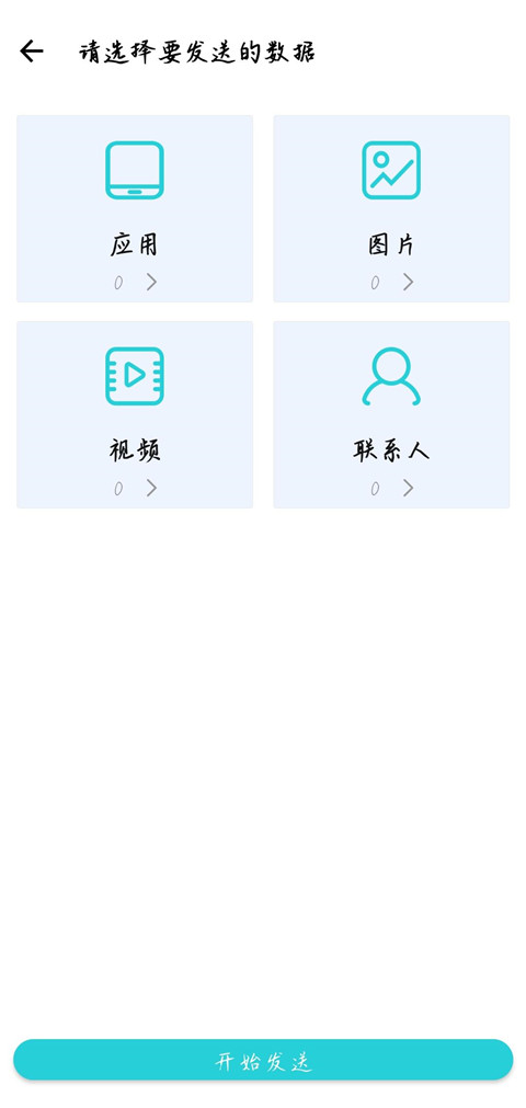 2、选择相应部分想传输的文件、应用、视频等,点击【开始发送】。
