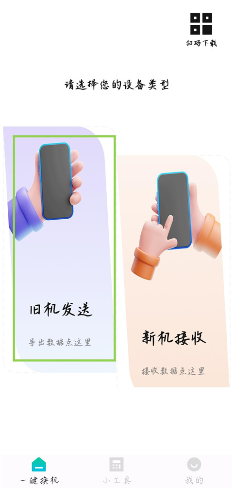 1、打开旧手机中的换机互传助手,点击【旧机发送】,导出数据。