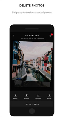 3、既然说 Slidebox 是丝滑优雅,那自然不是像系统自带的相册那般选中照片再操作,而是滑动屏幕搞定,比如左右滑动选择待处理的照片;