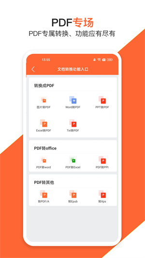 4、文档转换:支持Word、Excel、PowerPoint等格式转PDF。