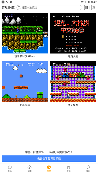 丰富游戏资源库:与众多游戏版权方及游戏爱好者合作,不断扩充游戏资源。拥有上万款不同类型、不同年代的经典游戏,从简单易上手的休闲益智类,到充满挑战的动作冒险类,满足不同玩家的口味。无论是想回味儿时玩过的某一款小众游戏,还是体验经典系列的完整作品,都能在资源库中找到。