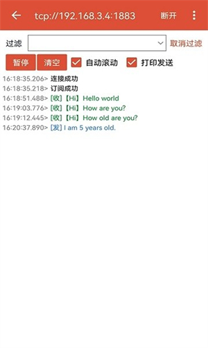 3、日志实时打印:提供详细的通信日志,实时跟踪消息流动。
