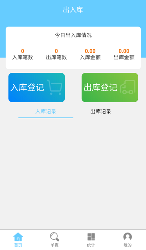 2、然后再首页中选择入库登记或出库登记