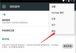 9、如果不想启用强制旋转功能,点击右上角的菜单,点击退出即可退出强制旋转。
