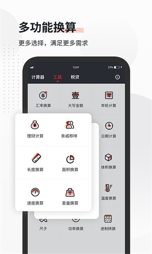 3、拥有普通计算器功能,支持单位换算、汇率换算、长度换算。