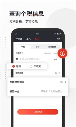 3、个税计算:快速计算个人所得税,适用于财务规划。